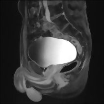Median T1-Weighted MRI With Contrast of Male Pelvis With a Full Bladder