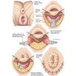 Overlapping sphincter repair is performed by dissection of the sphincter muscles with overlapping sutured repair