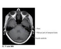 T1 Axial MRI Through the Cerebellum, Temporal Lobes, and Eye
